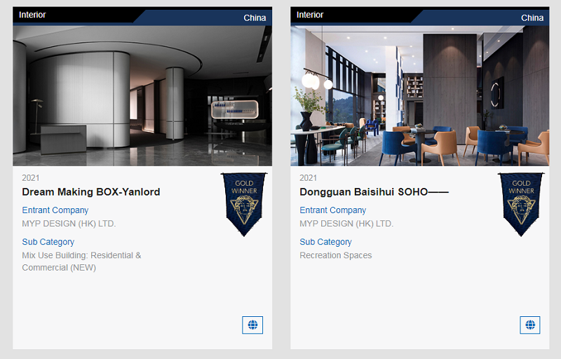 第五届美国缪斯设计大奖(MUSE Design Awards)获奖名单已于4月13日公布在其官网,MYP两项设计作品「深圳·仁恒梦中心招商体验馆」、「东莞·百司汇SOHO共享中心」均斩获室内设计类别金奖。