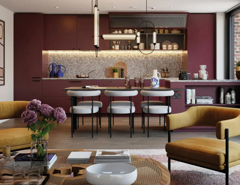 Embassy Gardens除了将世界首座玻璃底泳池纳入伦敦的天际线,还拥有2000间家庭住宅,包括三个卧室的套房和顶层豪宅,室内设计部分由 Benningen Lloyd 负责。Benningen Lloyd的创始人Katie和Annick秉持着兼具美观和功能性的设计理念进行内部的创作,并设有不同类型的套房区域。