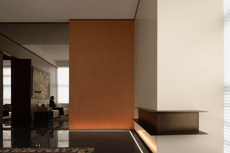 一如窗外平安银行大楼的日色,这套藏于深圳的美学设计,高逸、清致、温和中自有一种冈峦体势。因为坚持“设计即是美”的理念,在操刀设计时,将生活中深究、研学、痴迷的中国文化,融于作品。步入室内,光线和色彩的运用尤为重要,它们是上帝最隐秘的调色板。茶几上的一捧花,墙壁上的一幅画,一件雕塑,一把坐椅,人们眼光之处,所得皆成风景。就像一幅长达十余米的《富春山居图》画卷在生活中缓缓展开,可以欣赏,可以把玩,可以漫步在美学之中。”